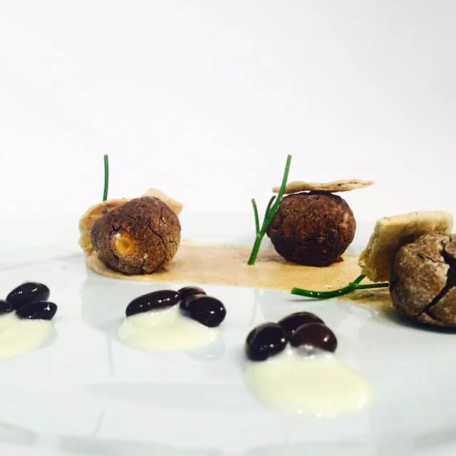 Falafel de garbanzo y frijol + Humus de avellana + Pan Pita + Jocoque