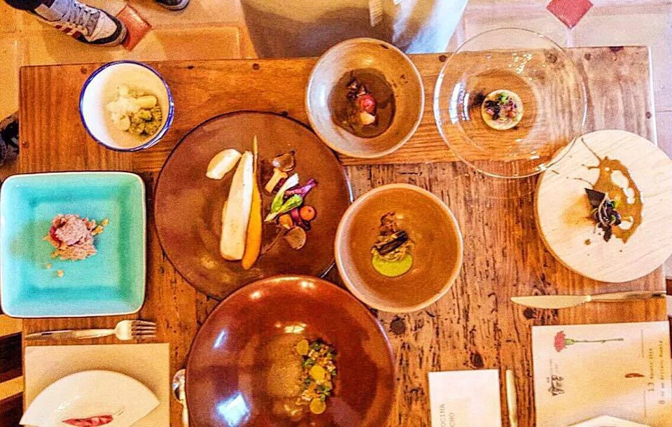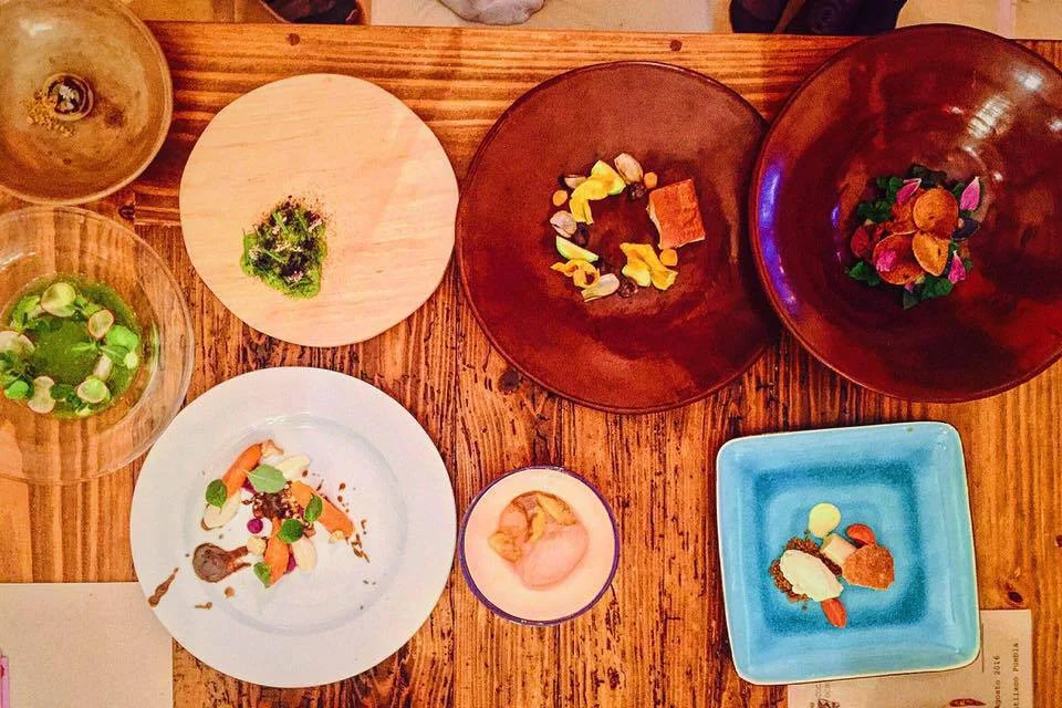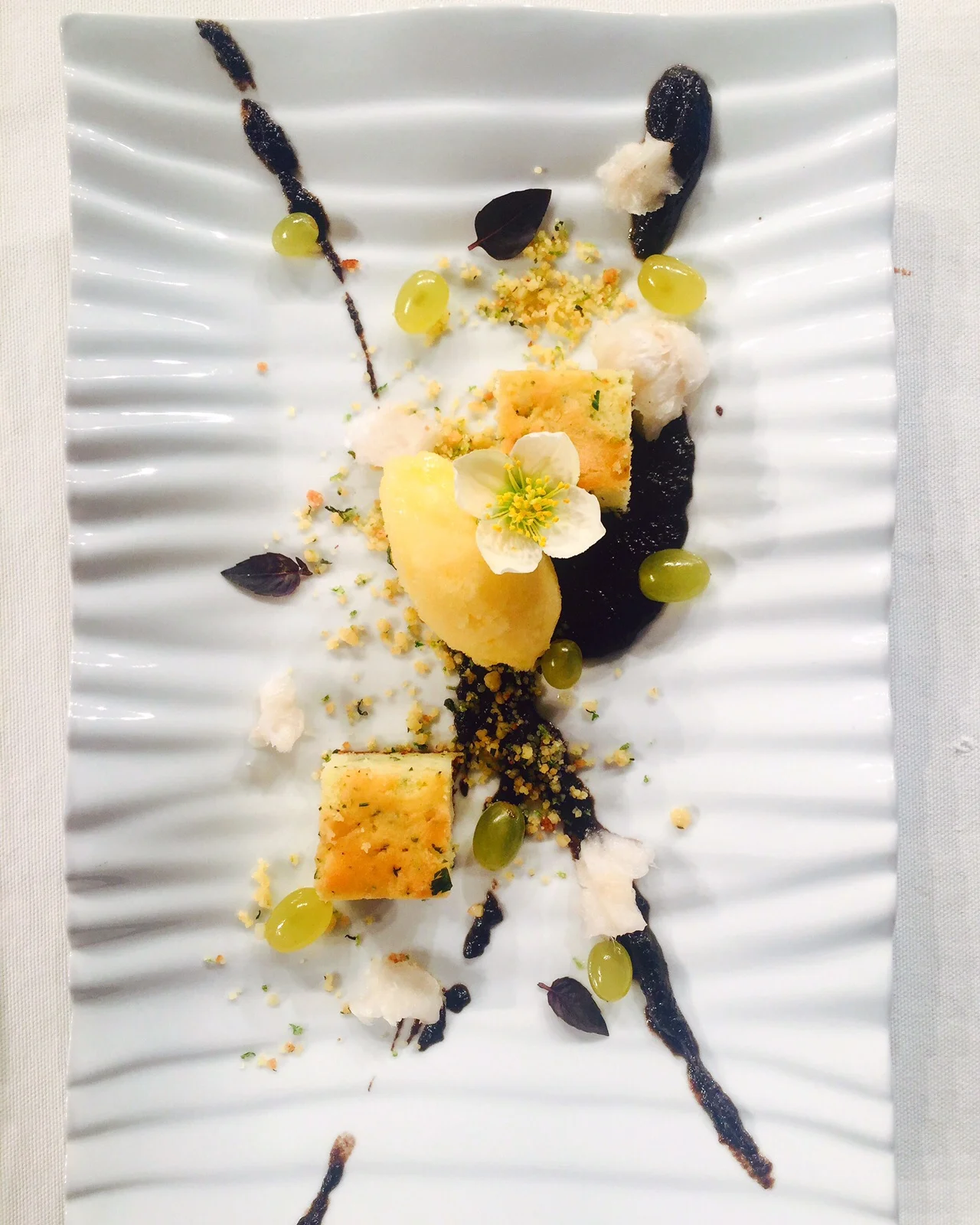 Bizcocho de cilantro, tequila, uva mineralizada. limón jengibre, albahaca y aceituna negra